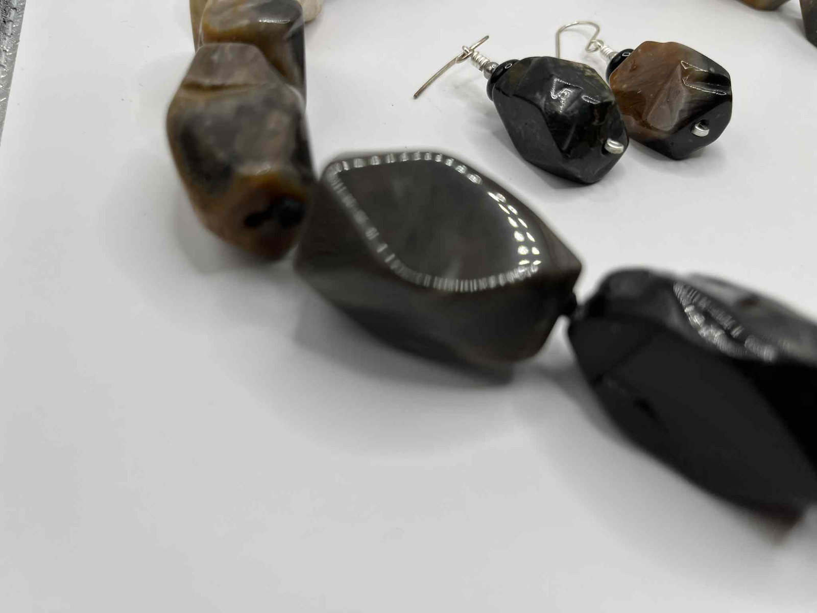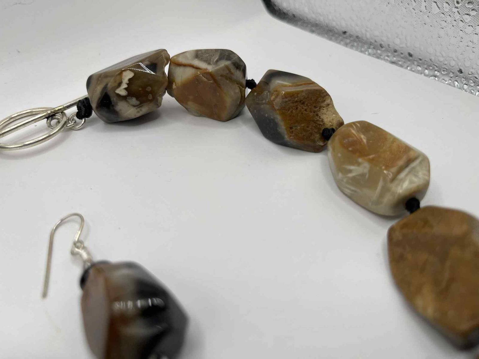 • Materials: Banded agate nuggets, black spacer beads, silver-tone clasp & ear wires