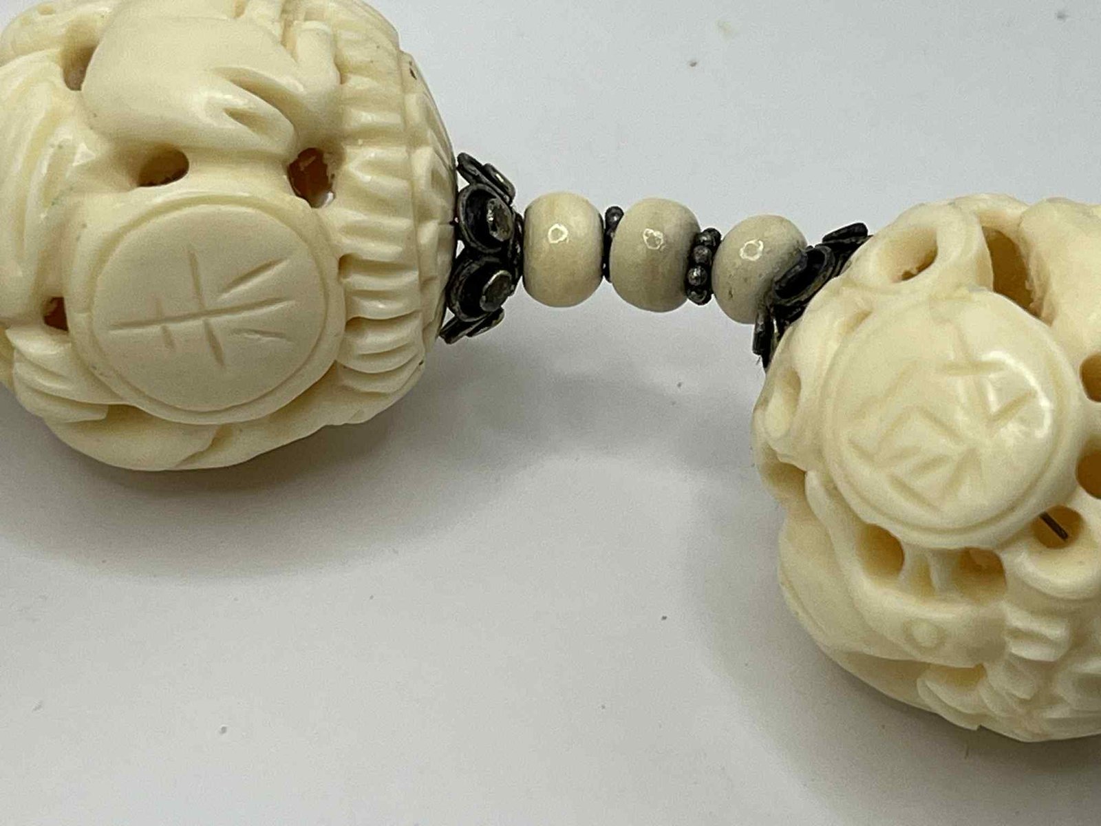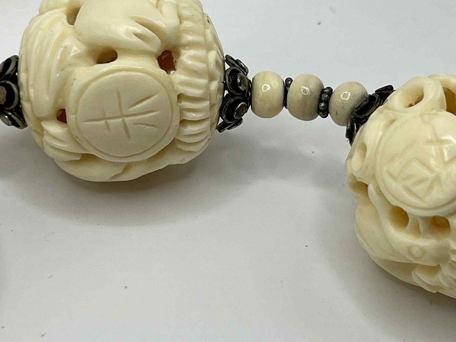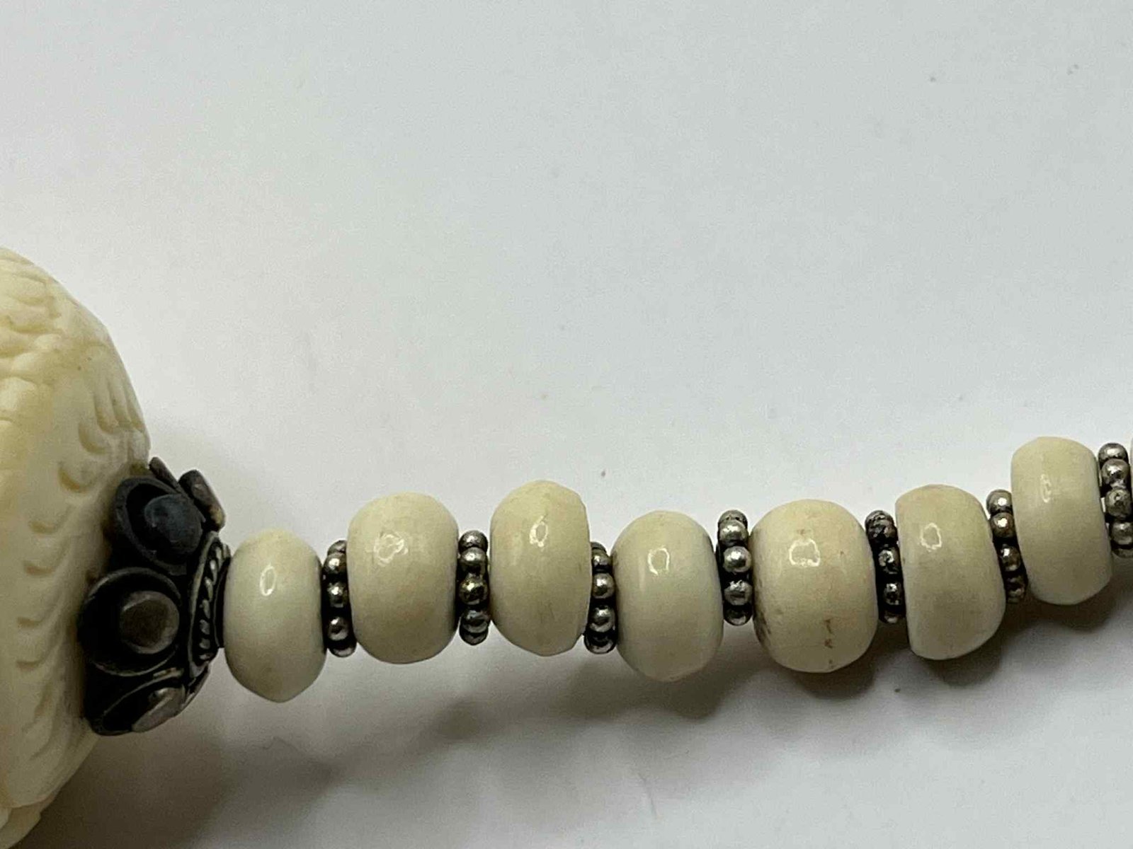 Vintage Hand-Carved Chinese Zodiac Bone Necklace with Sterling Silver Accents (A100)